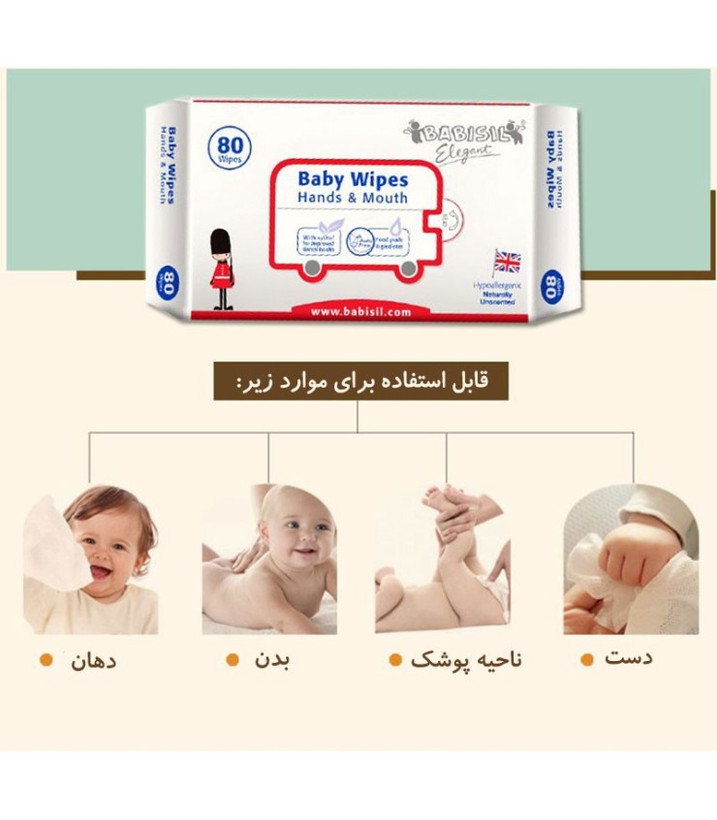 دستمال مرطوب و استریل چندکاره بی بی سیل 80 عددی Babisil