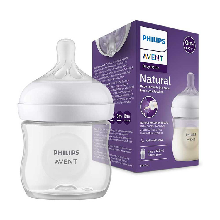 شه شیر نچرال 125 میل سری Response فیلیپس اونت Avent با سرشیشه ی نچرال ریسپانس، شیر را فقط زمانی آزاد میکند که کودک آن را بمکد. این ویژگی به کودکان اجازه میدهد که با ریتم طبیعی خودشان شیر را بنوشند، همانند زمانی که از سینه مادر تغذیه میکنند. شیشه دارای طراحی ضد چکه بوده و باعث میشود شیر از شیشه نریزد، همچنین طراحی آن به گونه ای است که برای دستان کودک خوش دست باشد. از جمله دیگر مزایای این شیشه شیر میتوان به قابلیت استفاده آسان و تمیز کردن راحت آن اشاره کرد. همچنین، این شیشه شیر با سایر محصولات فیلیپس اونت سازگار بوده و بدون استفاده از مواد BPA تولید شده است.