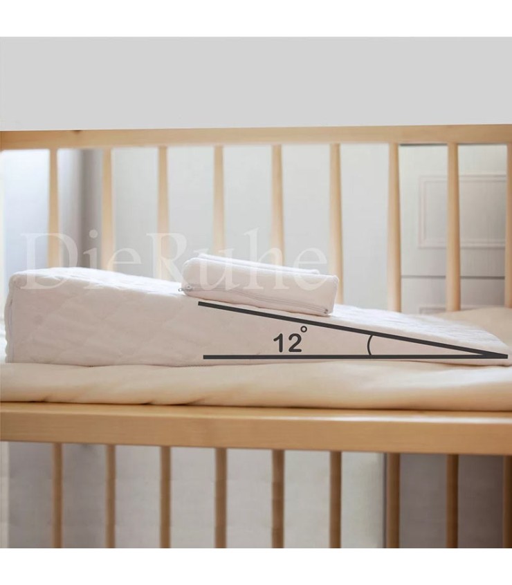 تشک آنتی رفلاکس دی روحه Die Ruhe یک تشک استاندارد با شیب 12 درجه است که که شیب آن می تواند در کاهش علائم رفلاکس و جلوگیری از خفگی احتمالی نوزاد موثر باشد. داخل این تشک از اسفنج مرغوب پرشده و رویه آن نیز از جنس پلی استر ضد حساسیت تولید شده است که به راحتی می توان آن را از تشک جدا نموده و شست.