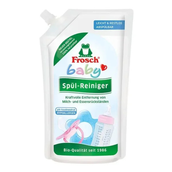 شوینده و ضد عفونی کننده پاکتی ظروف کودک فرش Frosch آلمان ،محصولی ایمن، گیاهی و مؤثر برای پاکسازی ظروف نوزاد است. برند آلمانی Frosch این شوینده را با ترکیبات ملایم و بدون آلرژن تولید کرده تا سلامت کودک و آرامش والدین را تضمین کند.