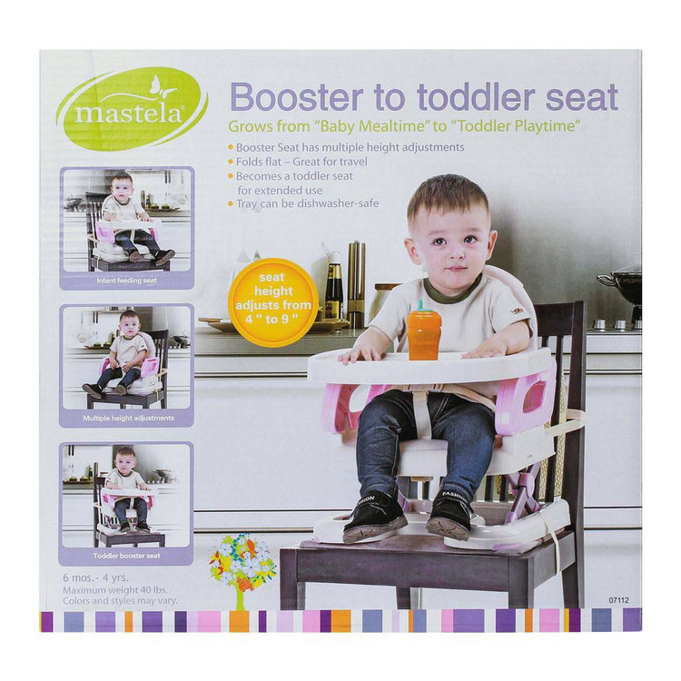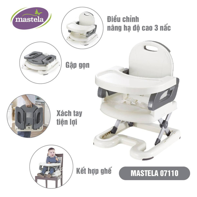 صندلی غذای پرتابل کودک ماستلا پایه فلزی تنظیم ارتفاع داربوستر mastela رنگ طوسی_صورتی