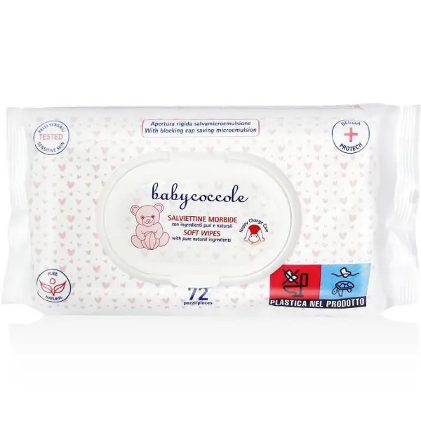 دستمال مرطوب بی بی کوکول محصول ایتالیا تولید شده با الیاف طبیعی و ترکیبات گیاهی و مغذی پوست.