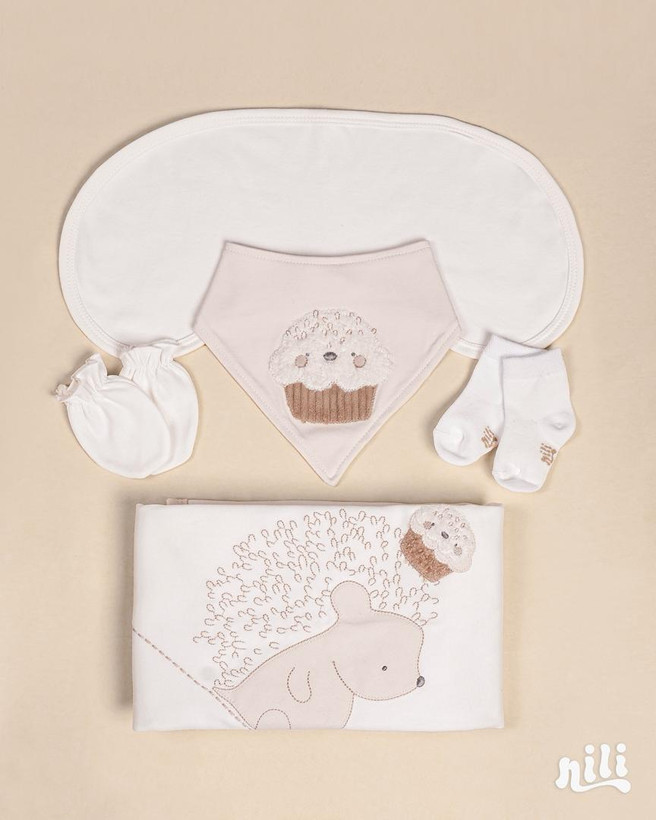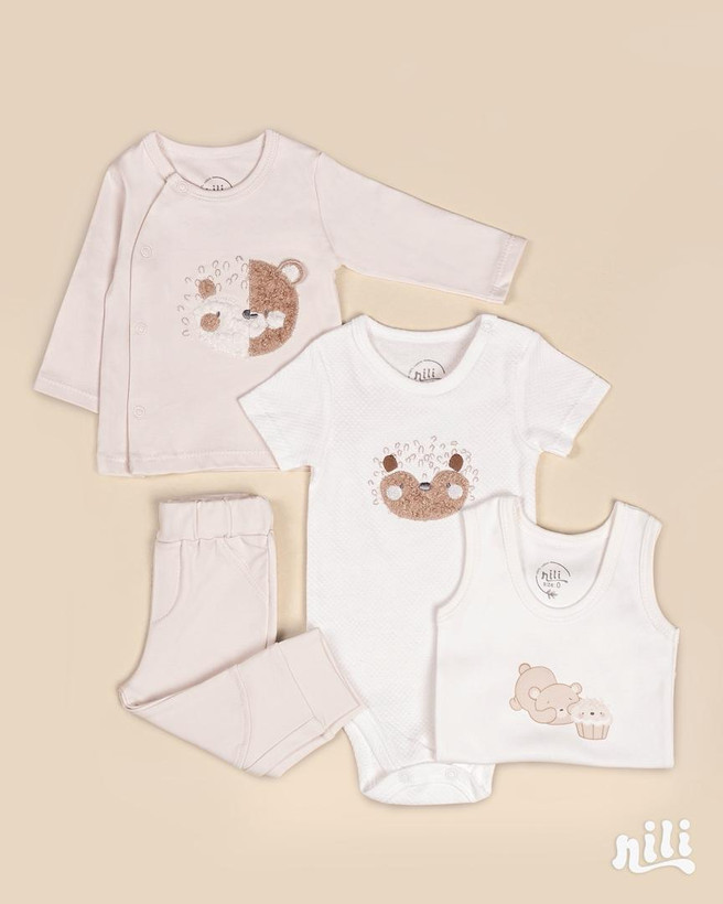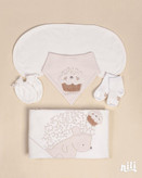 - این ست شامل: زیردکمه آستین کوتاه، زیردکمه رکابی، سرهمی جورابدار، مانتو، شلوار، پیشبند، کلاه گرد، یک جفت جوراب، یک جفت دستکش، آروغ گیر، دورپیچ نخی کلاه دار