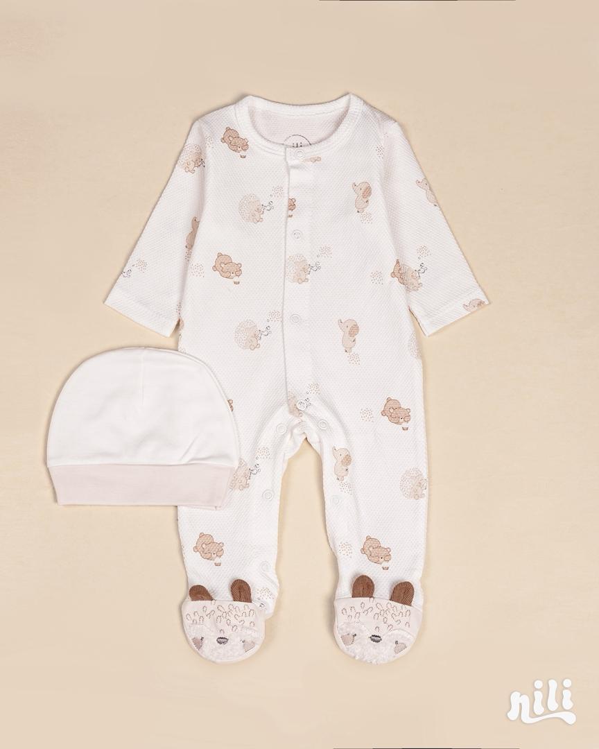 - این ست شامل: زیردکمه آستین کوتاه، زیردکمه رکابی، سرهمی جورابدار، مانتو، شلوار، پیشبند، کلاه گرد، یک جفت جوراب، یک جفت دستکش، آروغ گیر، دورپیچ نخی کلاه دار