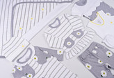 - این ست شامل: زیردکمه آستین کوتاه، زیردکمه رکابی، سرهمی جورابدار، مانتو، شلوار، پیشبند، کلاه گرد، یک جفت جوراب، یک جفت دستکش، آروغ گیر، دورپیچ نخی کلاه دار