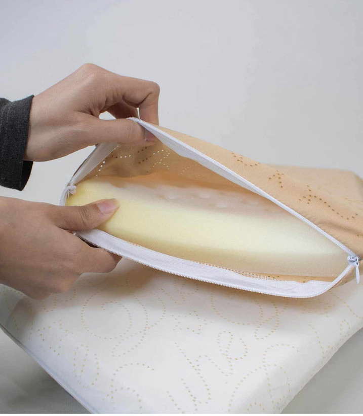 روکش بالش زیپ دارد، جدا می شود و قابل شستشو در ماشین لباسشویی است.