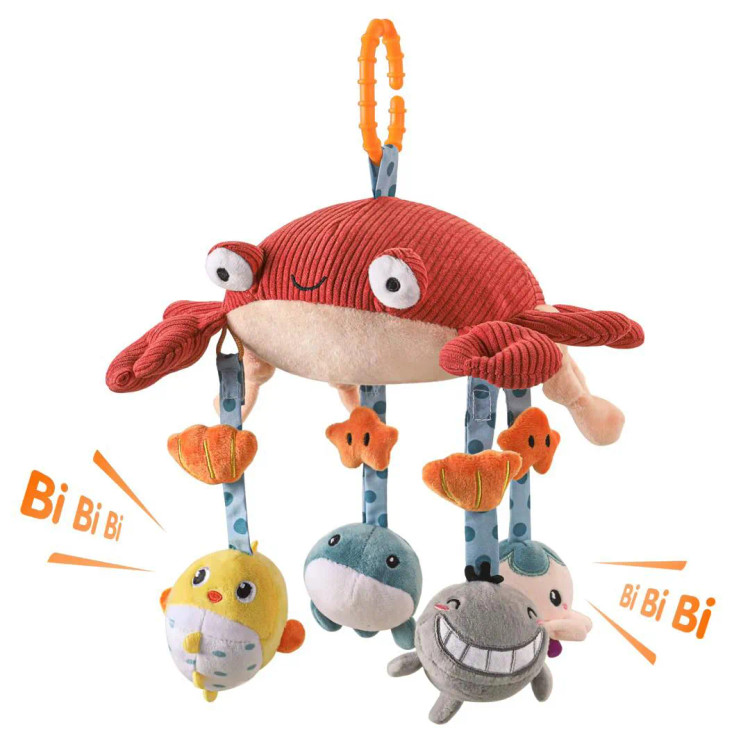 آویز کریر جغجغهای توماما با طراحی دوستداشتنی خرچنگ، یک اسباببازی چندحسی ایدهآل برای نوزادان از بدو تولد است. این آویز با رنگهای زنده و جذاب خود، به سرعت توجه نوزاد را به خود جلب کرده و با ارائه محرکهای بصری، شنیداری و لمسی گوناگون، به رشد و تکامل او کمک میکند.